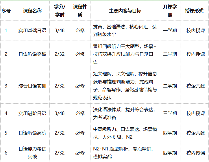 - 掌握地道日语交际能力,能够胜任日常场景下的沟通