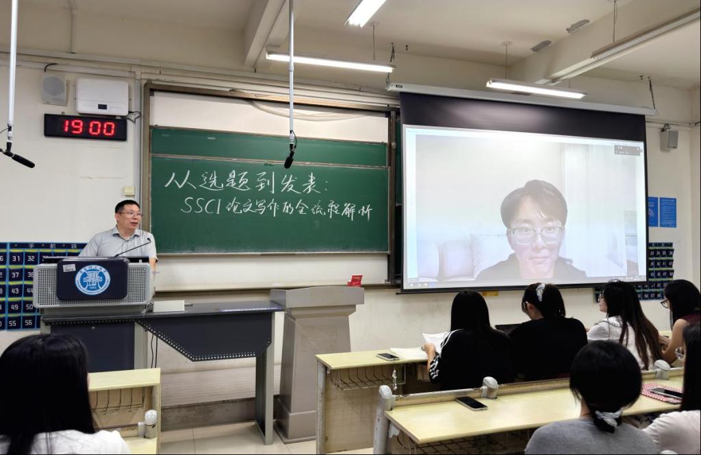 讲座全面涵盖了SSCI论文从构思到发表的核心环节。林益立以选题的创新性与期刊匹配度为切入点,强调研究价值评估的重要性。随后,详细解析了外文论文的写作结构,分析了引言部分的“六段论”逻辑框架、摘要的关键要素,将文献综述从简单罗列提升为批判性述评的方法。在数据分析方面,分享了数据来源处理、变量设定与计量模型选择的实用技巧。最后,分享了投稿期刊的选择策略、审稿意见的回应方法及注意事项等。