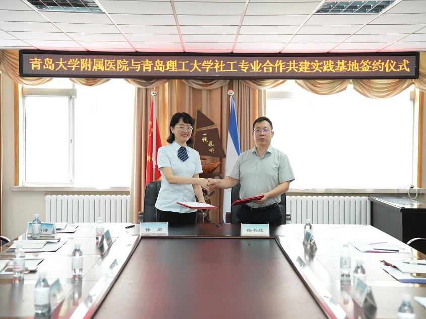 9月18日,人文与外国语学院与青岛大学附属医院共建社会工作研究生实践教学基地在青岛大学附属医院市南院区举行。人文与外国语学院副院长杨书胜与青岛大学附属医院副院长徐岩共同签署社会工作研究生实践教学合作协议。社会工作系系主任刘世颖、青岛大学附属医院服务管理部主任单信芝等出席签约活动。