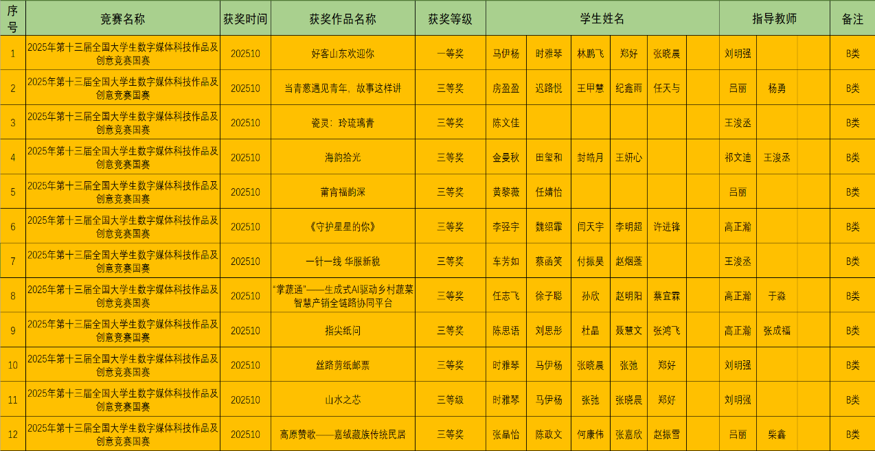 近日,第十三届全国大学生数字媒体科技作品及创意竞赛成绩揭晓,我院学子在AIGC类数字创意作品创作、民族文化创新表达、影视与动漫设计等10个赛道中喜获佳绩,共获国家级一等奖1项、三等奖11项,省级一等奖、二等奖和三等奖28项。其中,马伊杨、时亚琴、林鹏飞等同学的作品《好客山东欢迎你》(指导教师:刘明强),经过全国总决赛现场赛阶段的激烈角逐,荣获国家级一等奖。