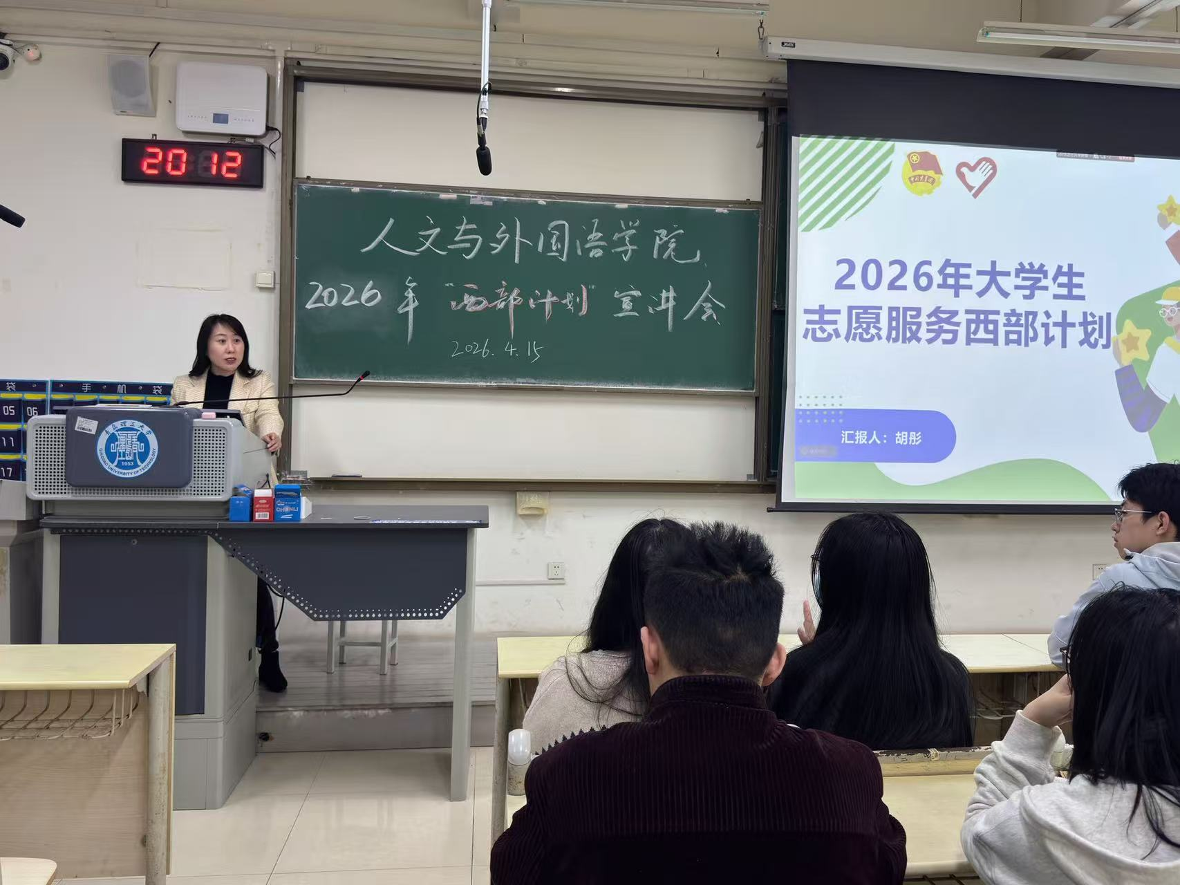 为深入引导和鼓励青年学子投身西部建设,将个人理想融入国家发展大局,4月15日,人文与外国语学院成功举办2026年大学生志愿服务西部计划宣讲会。会议采取线上线下相结合的方式进行,学院团委书记胡彤主持会议,往届西部计划志愿者代表及40余名学生参会。