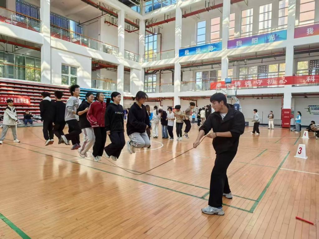 赛场上,运动员们精神饱满、全力以赴,个人项目争先恐后,团体项目同心协力。摇绳声、呐喊声、欢呼声交织成一片,整个风雨操场洋溢着青春的热情与运动的活力。网新242班范乐乐同学激动地表示:“这次比赛不仅是一次体能和技巧的较量,更是一次意志与团队精神的淬炼。大家在竞技中成长,在协作中收获友谊,充分展现了‘百折不挠、刚毅厚重、勇承重载’的理工精神”。