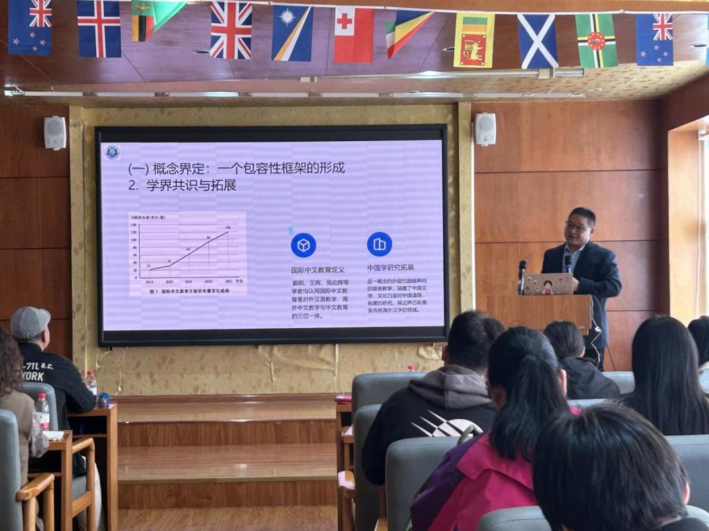 人文与外国语学院副院长、国际中文教育专业学位点负责人张成福教授作了题为《国际中文教育的概念内涵、学术体系与实践创新》主旨报告。来自青岛大学、青岛理工大学、山东科技大学、鲁东大学及青岛滨海学院等多所高校的专家学者,围绕“国际中文教育教师养成”“学科体系创新”及“跨文化人才培养”等议题展开了深入研讨。我校国际中文教育专业研究生全程参与,积极与参会学者交流前沿观点。