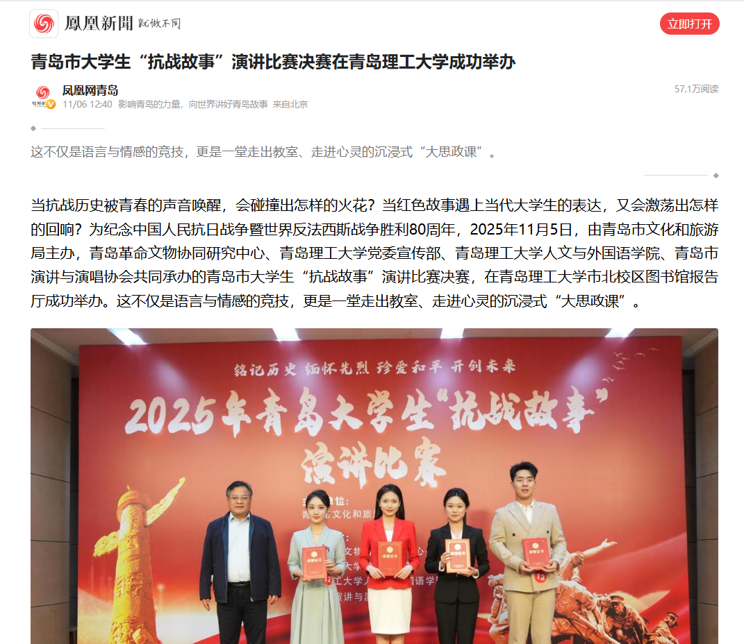 青岛市大学生“抗战故事”演讲比赛决赛在青岛理工大学成功举办__凤凰网