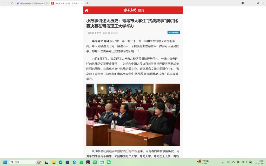 青报教育在线:小故事讲述大历史 青岛市大学生“抗战故事”演讲比赛决赛在青岛理工大学举办