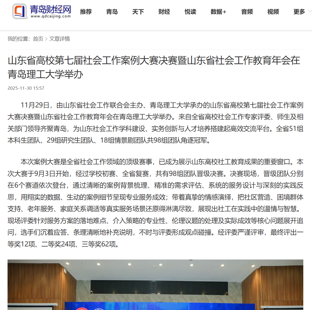 大众网:山东省高校第七届社会工作案例大赛决赛暨山东省社会工作教育年会在青岛理工大学举办