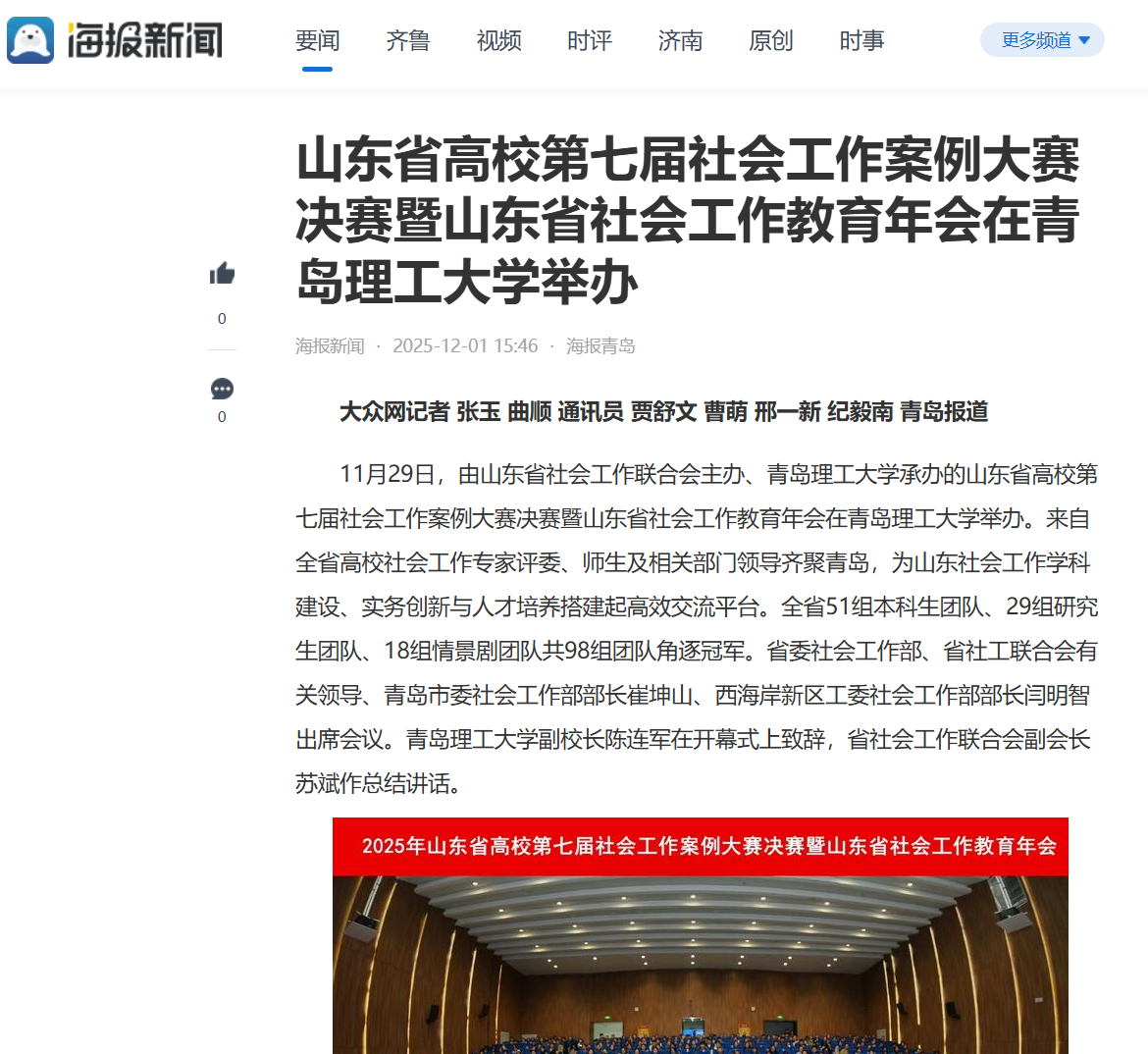 大众网:山东省高校第七届社会工作案例大赛决赛暨山东省社会工作教育年会在青岛理工大学举办