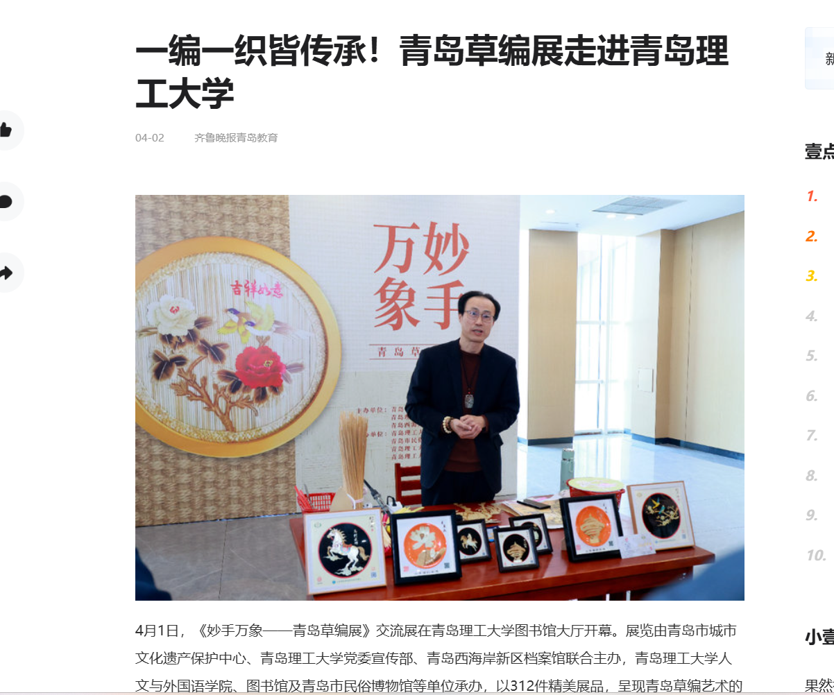 齐鲁晚报:一编一织皆传承!青岛草编展走进青岛理工大学