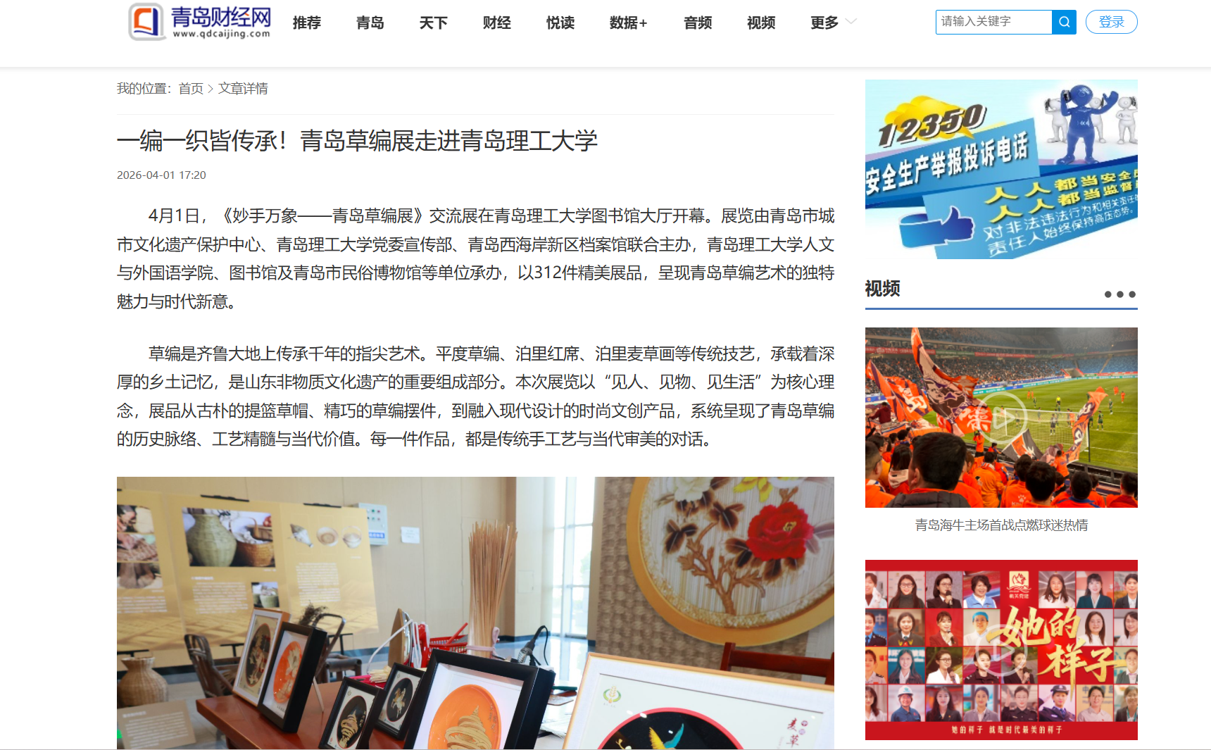 齐鲁晚报:一编一织皆传承!青岛草编展走进青岛理工大学