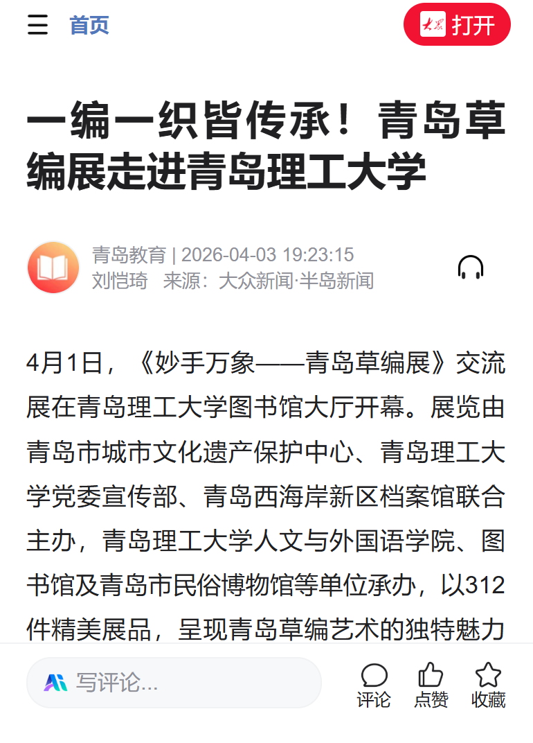 半岛新闻:一编一织皆传承!青岛草编展走进青岛理工大学