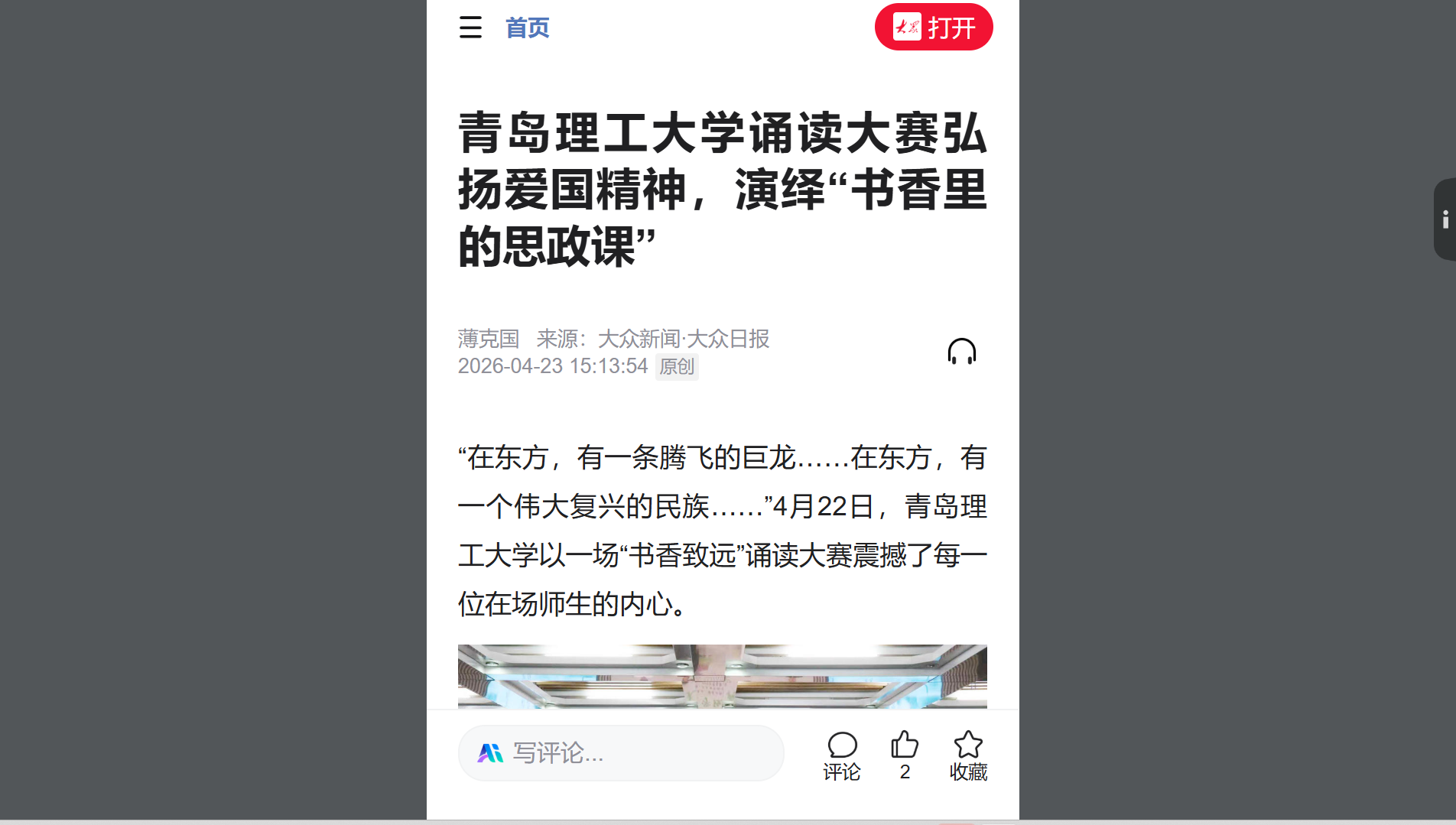 大众新闻:青岛理工大学诵读大赛弘扬爱国精神,演绎“书香里的思政课”