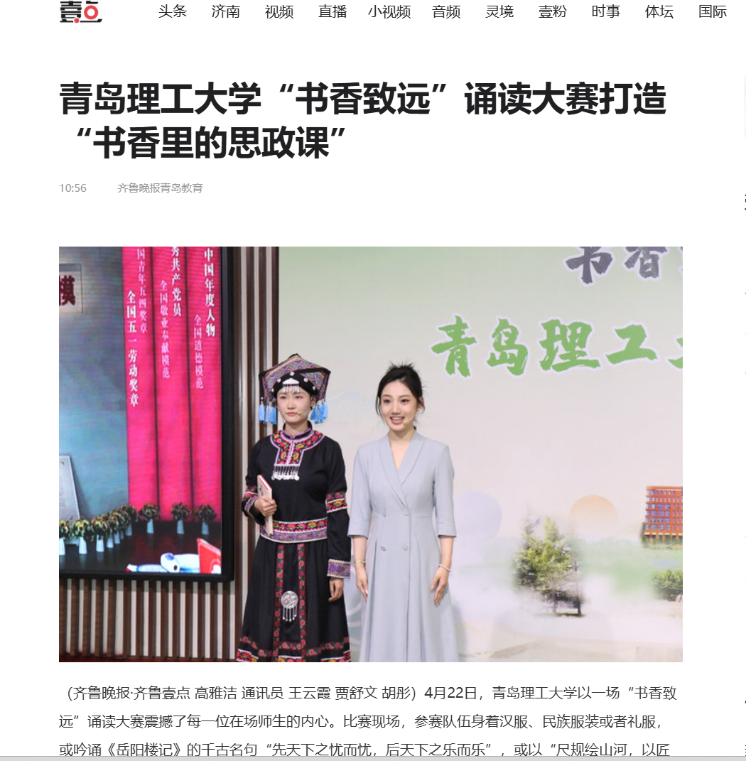 齐鲁晚报:青岛理工大学“书香致远”诵读大赛打造“书香里的思政课”